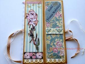 Las técnicas del scrapbooking quedan ideales para crear marcapáginas. Como ejemplos (aparte de los míos que te enseñé al principio) tienes éste de Martao: