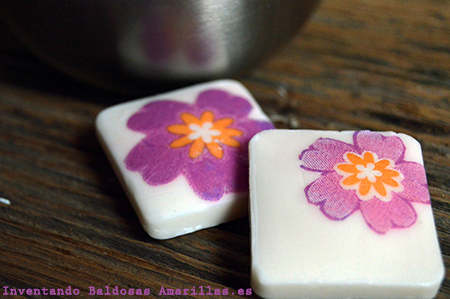 Del mismo modo que añadimos aroma a los jabones, se le pueden añadir flores secas de alegres colores en su interior (si el jabón es transparente), lo que le dará un toque muy especial al baño.