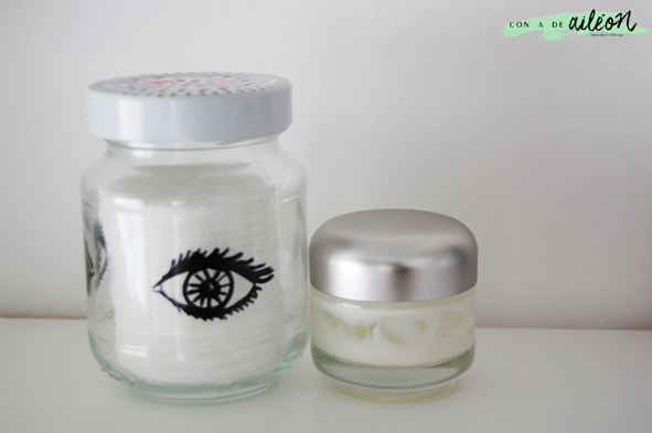 Este Septiembre está siendo algo duro... lo reconozco...Me toca hacer uso de "cosméticos" y productos varios para disimular ojeras y piel estropeada, así que vengo con algo muy sencillo: un bote de cristal que vamos a reutilizar para poner los discos desmaquilladores. Solo necesitamos el bote, un rotulador permanente y un poco de esmalte de uñas de colores. Empezamos dibujando el ojo, puedes hac ...