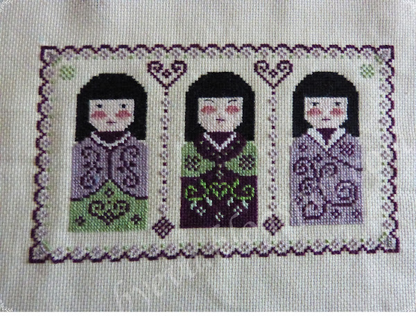Hola !! Sigo terminando trabajos de punto de cruz con las chicas de Bordando Juntos...voy retrasadísima, pero bueno...poco a poco me pondré al día. Este es un Tralalá que me encanta, con unas Kokeshis muy monas, ...todas serias ellas. Espero que os guste Hasta prontoooooooo!!!!
