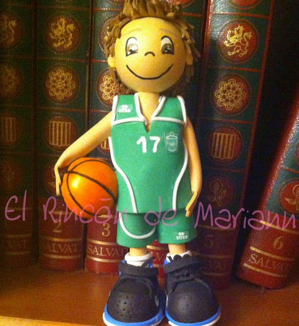 Buenos das !!! Hoy me toca ensearos un fofuchito de no mas de 15 cm, parece que son los que mas xito tienen... Se trata de un jugador de baloncesto del equipo de Covibar. Me ha gustado mucho hacerlo, pues es una historia muy especial, llena de casualidades :-) Todo esta hecho con gomaeva, las lineas de la camiseta estn hechas con cola de ratn de color blanco. Que paseis buen da y mejor semana!! Be ...