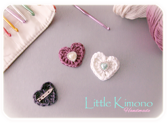 Hacemos un anillo mágico con su correspondiente punto bajo para que no se deshaga. Seguidamente hacemos tres puntos bajos al aire y en el tercero cogemos hebra tres veces para realizar un punto alto triple en el mismo aro mágico. A continuación hacemos dos puntos altos triples. Para terminar la primera parte hacemos un punto enano en el aro creando así la curvatura. Para realizar la segunda parte, solo tenemos que repetir la primera. Una vez hecho de nuevo el punto enano, se tira del hilo corto cerrando el aro mágico y, en este momento, cortamos y cerramos el tejido. Los hilos que nos sobran los enrollamos en el centro del lazo, le hacemos un pequeño nudo por detrás y recortamos y escondemos los hilos sobrantes.