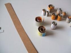 Cortar tiras de cartón del ancho que queramos la letra (yo le he puesto dos centímetros) y cortando trocitos preparar espirales y zig-zag de diferentes tamaños.