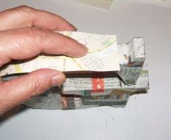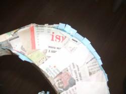 Para dar consistencia al conjunto, recubrimos con tiras de papel de periódico mojadas en cola de empapelar. Ponemos varias capas de papel y dejamos secar.