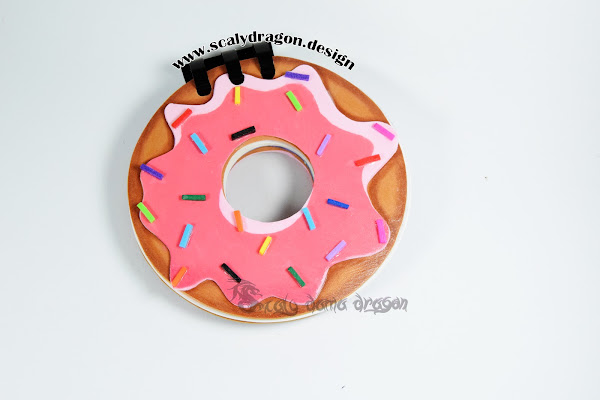Con una de la rosquilla en rosado vamos a dibujar el glaseado de nuestra dona y tenemos que recortar 2 capas de glaseado de fresa.