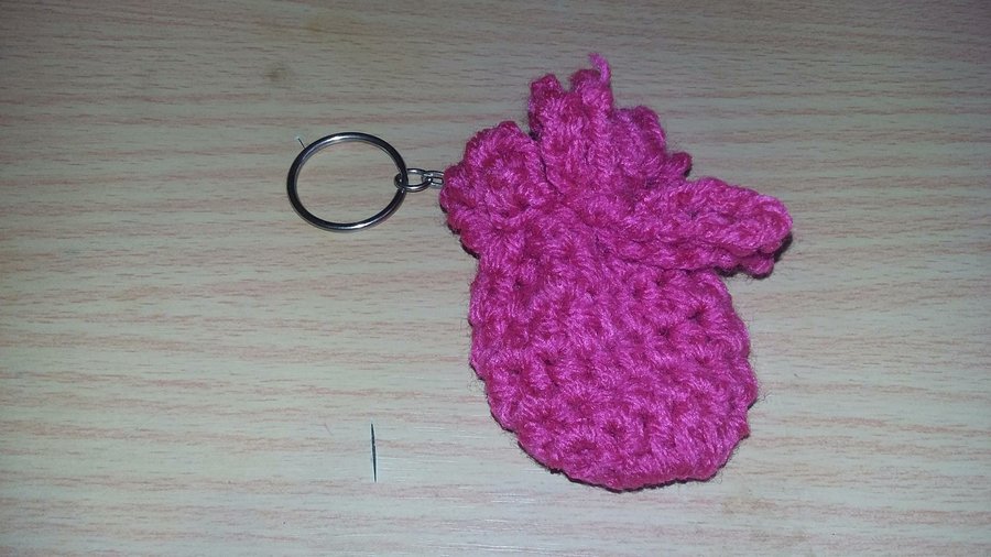 Es una hermosa bolsita a crochet, que la puedes utilizar como llaverito y al mismo tiempo como monedero.