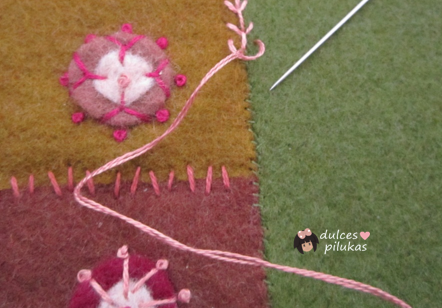 Acabamos con el tercer tutorial dedicado al fieltro, veremos cómo unir las piezas o bloques. Y vamos a terminar el diseño que os propuse. Ya sabéis que estos tutoriales os servirán para hacer cualquier diseño,este trabajito no deja de ser una excusa para ponerlos en practica.Os explico primero como unir las diferentes piezas o bloques. Podemos utilizar varias opciones.Opción 1- Un pequeño repulgo ...