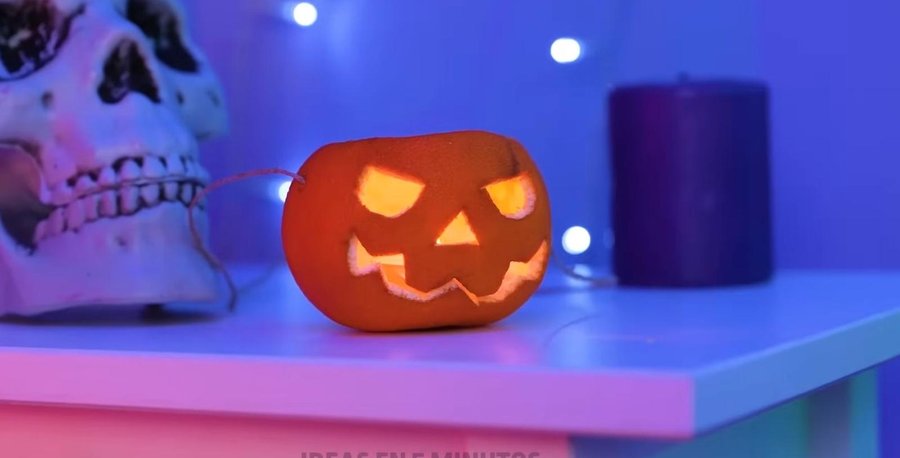 Tienes muchas ideas de decoración también. Por ejemplo, esta naranja sustituye a las calabazas y te permite hacer un portavelas chulísimo.