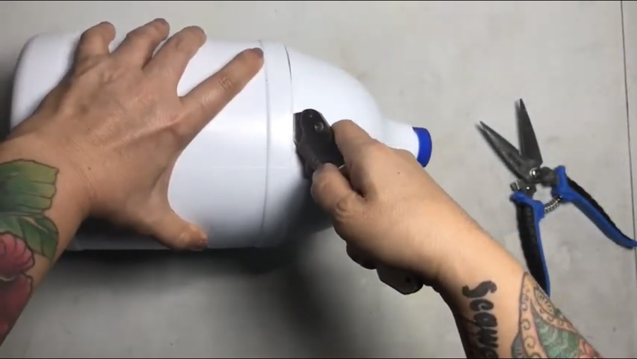Este es un bidón de cloro tiene un buen tamaño se corta fácilmente con tijera o bisturí
