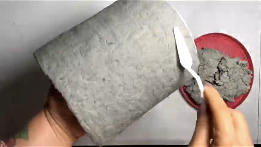 luego se exprime con fuerza y se le agrega con generosidad cola blanca, un poco de estuco plástico, un chorrito de vinagre blanco y otro de aceite (de cualquiera)