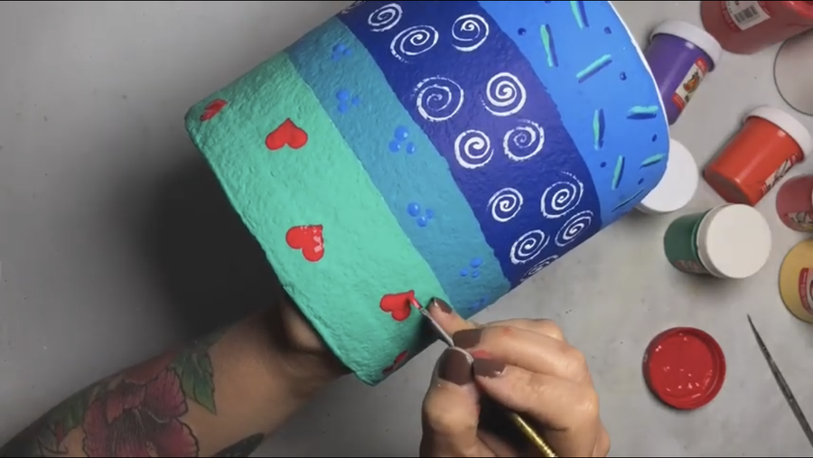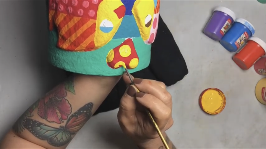 Lunares utilizando los cabos de pincel y marcador pero cómo esta superficie está tan irregular, término de organizarlos con pincel