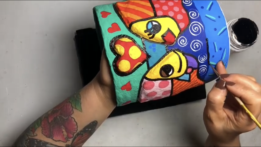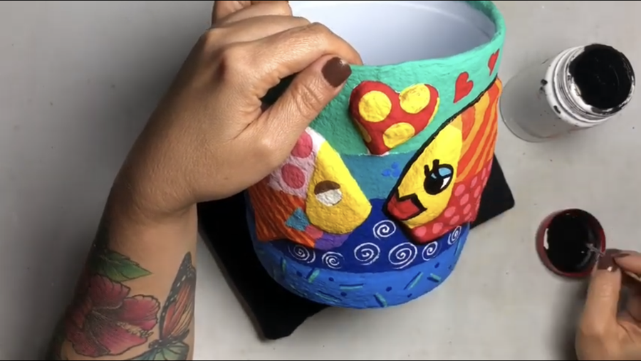 Y el toque final la línea con acrílico negro que enmarca todo el trabajo