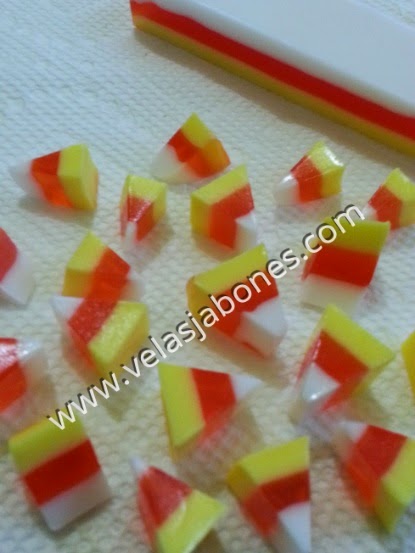Como les prometí el lunes pasado, aquí les tengo el "making off" del jabón "candy corn"