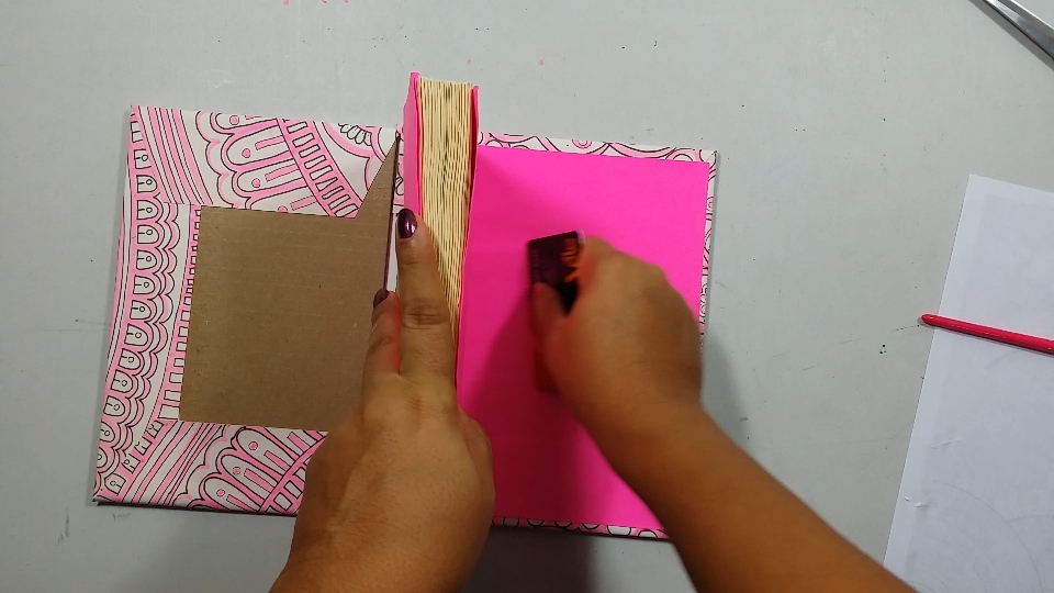 Luego voy a pegarle el cuaderno a la caratula nuevamente usando cola blanca