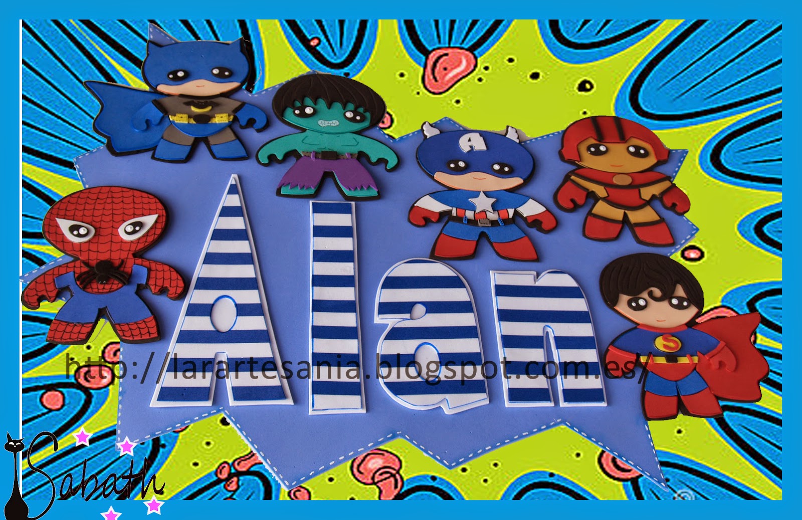 Buenas tardes lluviosas, aquí llega la liga de la justicia acompañando a los fichajes más importantes de la temporada, que no podían ser otros que los peques de la casa..Estos carteles en goma eva decoran ya las puertas de David, Xavier y AlanSuperheroes y deportistas pero sobre todo incansables ..... ¿a que si mamas?Espero os gusten, besooos y gracias por vuestra visita.