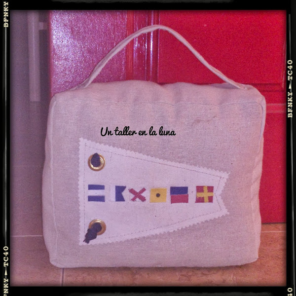 Este es un encargo de una amiga,quería un peso para puertas para la habitación de su hijo,lo dejo a mi elección y como ya no es un niño pequeño no quería nada infantil, a si que decidí hacerle este saquitoEsta hecho en lino,y relleno de fibra siliconada .Quería para ella algo diferente .Se me ocurrió hacerle una bandera y dentro de la misma banderas navales ,cada una de ellas significa una letra y ...