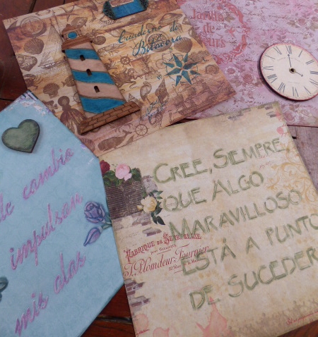 Holaa¡Hoy os enseño papeles de scrap decorados.......pasta de relieve, siluetas de madera, plantillas y ceras al óleo, son los materiales que he utilizado.Hacer un relieve sobre un papel de scrap, no tiene ningún problema. Lo que sí iba a ser un incoveniente es colorear ese relieve con pinturas acrilicas o de tiza, por la humedad propia de las pinturas......así que por eso he utilizado las ceras ...