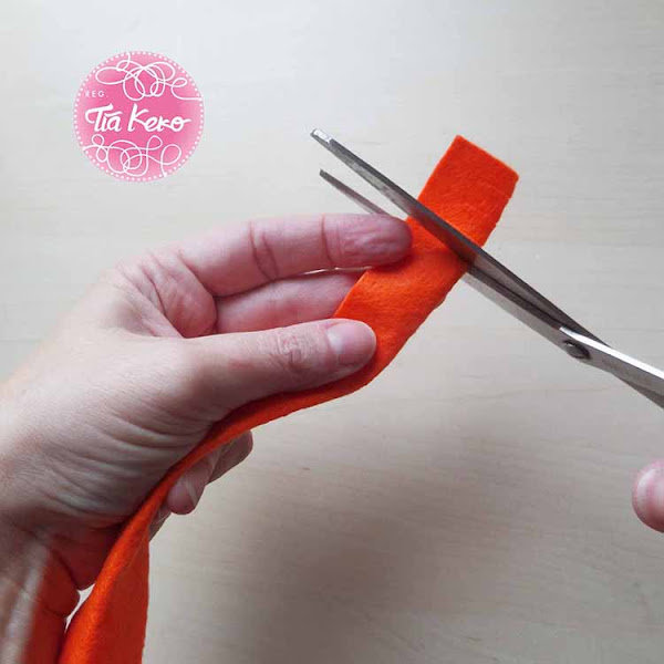 Vamos a empezar cortando un trozo de tira de fieltro de unos 20cm de largo y 4,5cm de ancho.