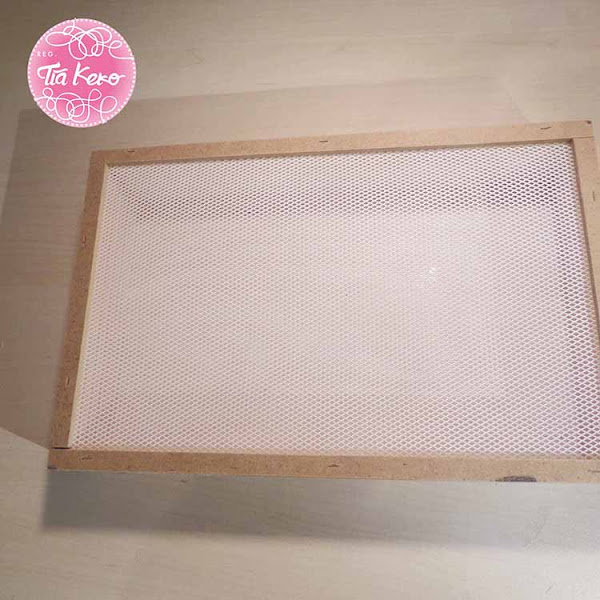 Lo primero que vamos a hacer es proteger la rejilla blanca antes de pintar la madera del cedazo.