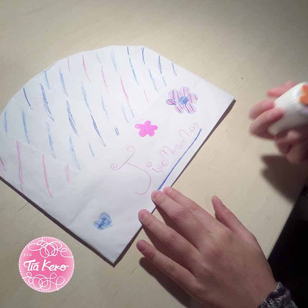 Lo primero que haremos será dibujar en el trozo de goma eva lo que a cada niño le apetezca. Jimena dibujó una bonita flor.