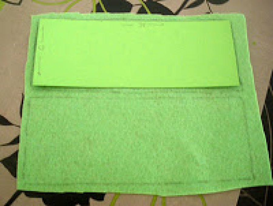 3. Doblamos la parte inferior del rectángulo grande hacia arriba formando lo que será el bolsillo grande, y cosemos los bordes.