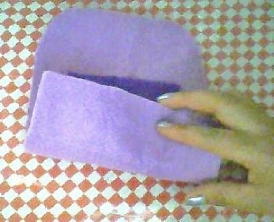 1. En primer lugar recortamos un rectángulo del tamaño que queramos nuestro monedero. Las esquina superiores las recortamos con forma redondeada como veis en la imagen.