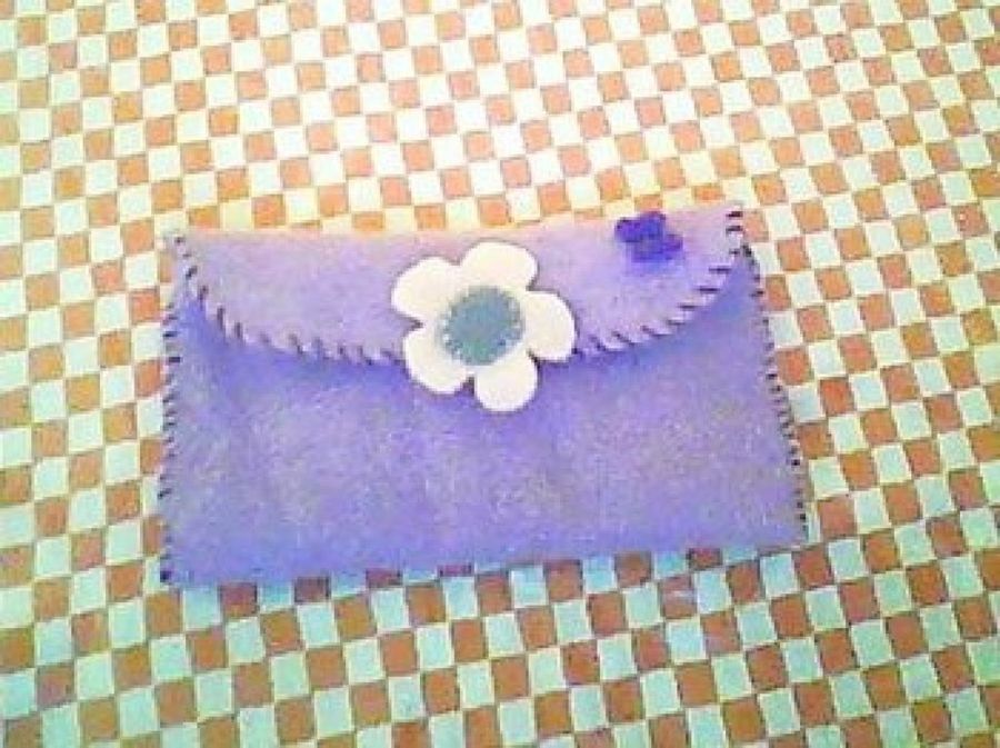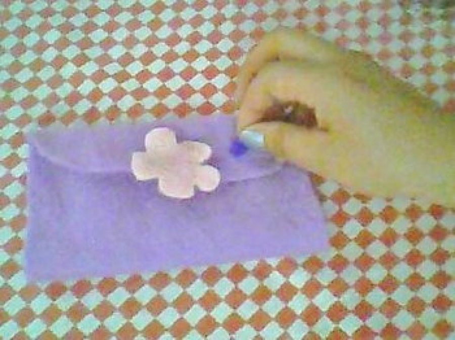 4. Una vez cosido ya podemos hacer los detalles que queramos, en este caso nuestra usuaria elabora una flor de un color más claro y la cose en el centro de la solapa a modo de cierre.