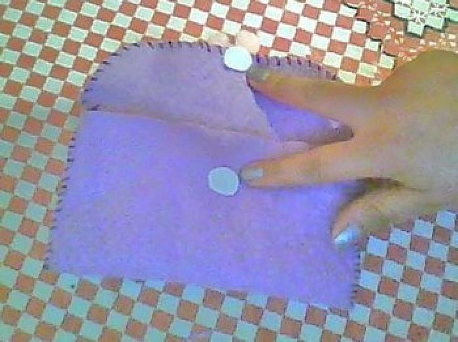 5. Por último le pone un trozo de velcro para poder cerrar el monedero. En este caso también decidió rematar los bordes de todo el monedero con unas puntadas más oscuras.