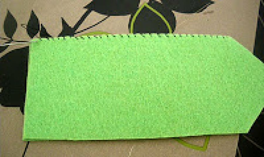 4. Vamos cosiendo el contorno del marcapáginas, uniendo los dos rectángulos de fieltro.