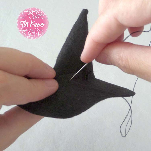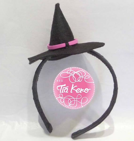 Por último, con un trozo pequeño de fieltro vamos a coser el gorro a la diadema. Cosiéndolo de tal forma que la diadema quede entre el gorro de bruja y este nuevo trozo de fieltro. Tal y como aparece en la imagen de abajo: