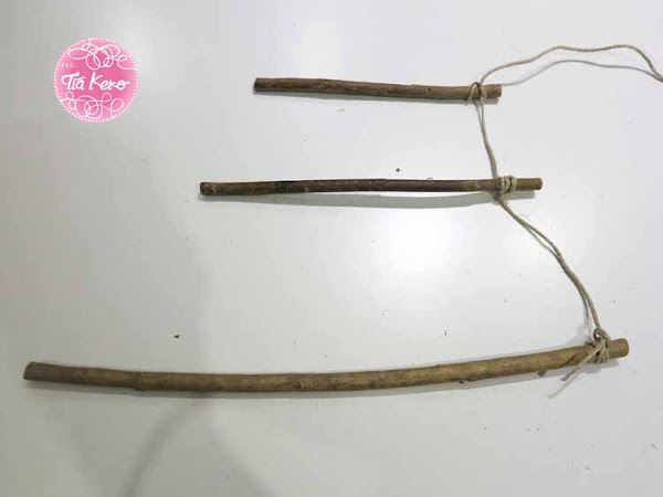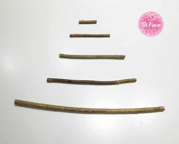 Lo primero que debemos hacer es cortar las ramas en alturas distintas para hacer la forma del árbol. Para ello cogemos una regla y vamos quitando 8 cm de cada rama. Marcamos con un rotulador donde cortar y serramos!!