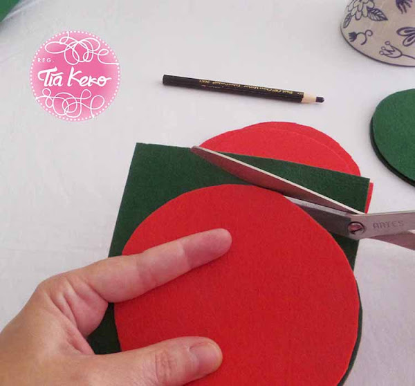 Vamos a coger un círculo de 11 cm de diámetro y hacemos una plantilla para cortar los círculos de fieltro.