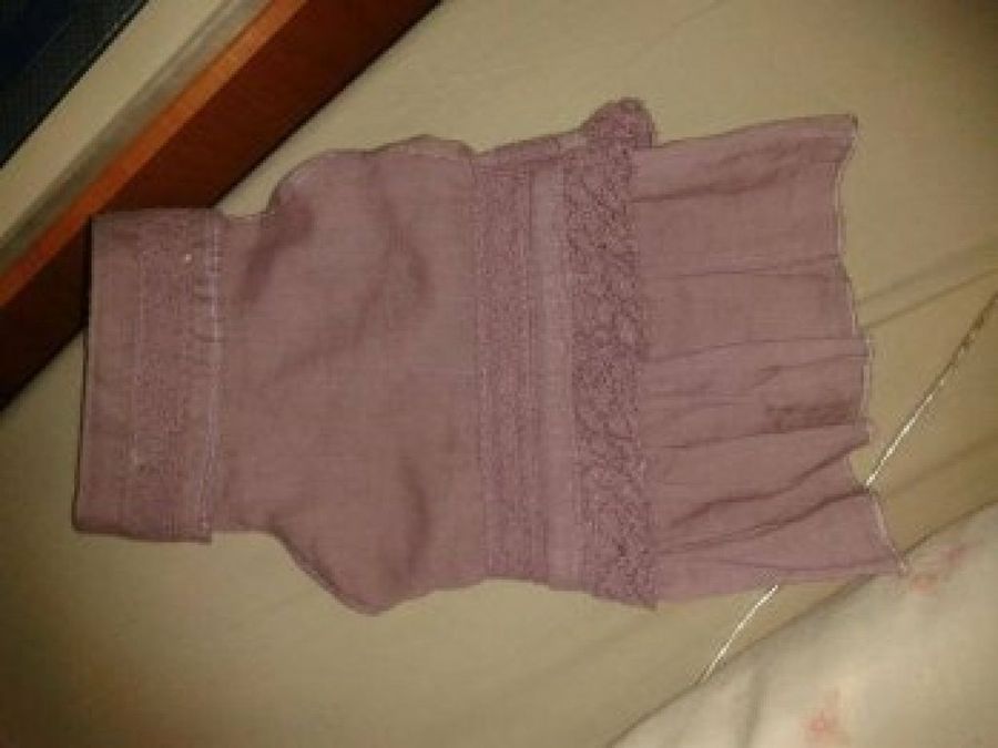 La lectora Isaty ha hecho otro modelo con este vestido. Cortando la parte inferior y haciendo tiras ha elaborado un acabado fácil de poner. En la parte superior ha respetado el dobladillo por donde asomará la cabeza. Todo ello, ha sido realizado con su máquina de coser.