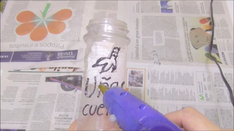 Lo siguiente que haremos será escribir el ingrediente con un rotulador y repasarlo con silicona caliente