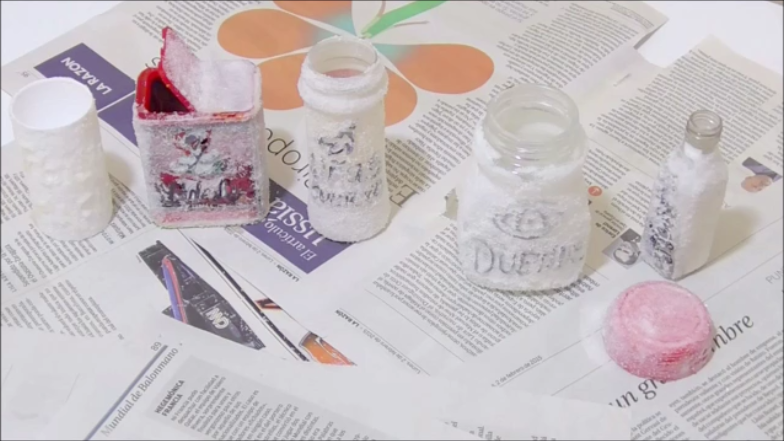 para darle un aspecto antiguo le vamos a poner cola blanca y a continuacion lo rociaremos de sal y dejamos secar durante varias horas hasta que endurezca