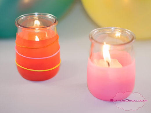 Desde Somos Deco nos enseñan a hacer estos portavelas con botes de cristal y globos, muy sencillos pero vistosos y coloridos. ¡Hace falta muy poco para cambiarle la cara a un bote!