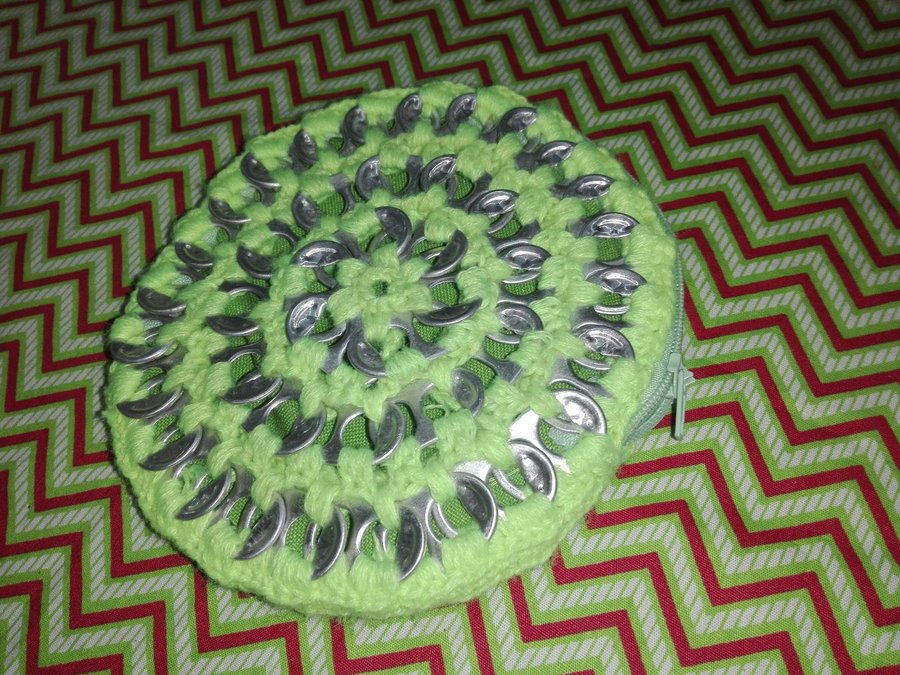 Y la ultima manualidad que les voy a mostrar es este bonito monedero también reciclando anillas de refresco esta muy lindo y muy fácil de elaborar.