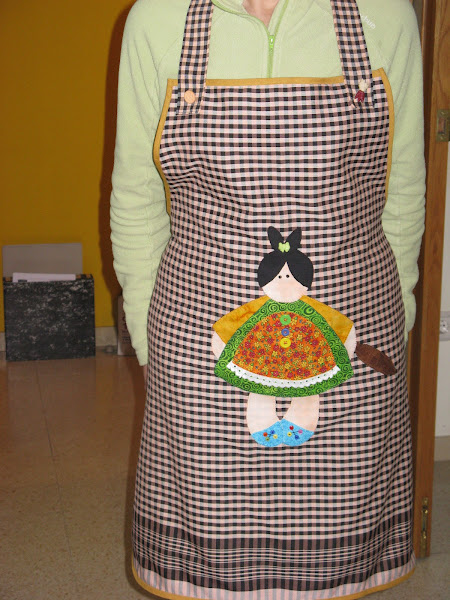 Hace muchos dias que no pongo nada aqui, la verdad es que tampoco he hecho gran cosa, entre que estoy muy vaga y que ahora me apetece mas hacer experimentos en la cocina, pasan dias sin que coja las agujas. Creo que estos seran los ultimos por una temporada porque llevo una racha que solo hago delantales y cosas de cocina, asi que ahora descansare un poquito.Este delantal con esta cocinera tan res ...