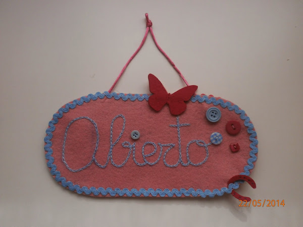 Mañana mi cuñada y su hermana inauguran una tienda, una merceria/corseteria. Para que le traiga suerte en esta nueva aventura que es abrir un negocio en los tiempos que corren, le he hecho este letrerito para la puerta... MUCHA SUERTE TITA LAURI!!!!Le he añadido una herradura a la parte de "abierto" para que les traiga suerte y permanezcan abiertos muuuuuuuucho tiempo