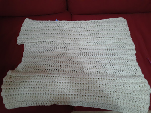 Despues segui tejiendo otros 20 cm PERO SOLO HASTA LA MITAD DE LA LABOR. Luego al llegar a los 20cm, hice una cadeneta de 60 cadenetas (ES DECIR LA MITAD DE MI LABOR) he hice la otra delantera y la otra trasera. Las uni con punto enano POR EL DERECHO.