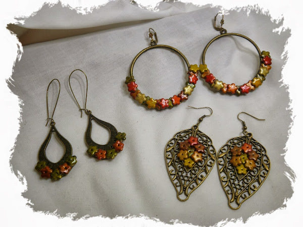 Con flores realizadas en arcilla polimerica y pintadas con pinturas al alcohol he conseguido estos pares de pendientes muy, muy otoñales