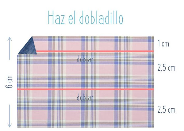 No te olvides de colocar las anillas de tela aproximadamente a 4 cm de la costura de la base, por ambos laterales.
