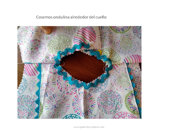 Los pololos, se unen por el costado y la costura central, cosemos ondulina en las perneras abajo y cosemos el cordoncillo de goma ayudándonos con la mano derecha, tirando de la goma y pisando el pedal de la máquina cosiendo en zig-zag estrecho alineado con la ondulina, pues al coser el forro debe verse la onda que hace para que adorne a contraste con la tela.