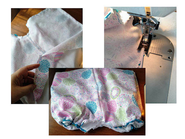 Una vez cosida la goma, cerramos la base del pololo de ambas telas. Y cerramos en la cintura, damos dos pespuntes paralelos con un ancho de 1,5 cm y dejamos una abertura de 2 cm para insertar la goma elástica con ayuda de un imperdible. Cerramos los 2 cm con pespunte.
