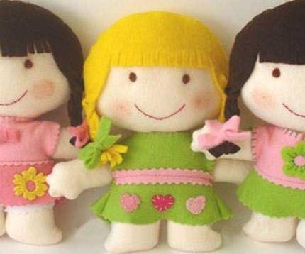 Patrones de muñecas y perritos,muñecos tanto para niña como para niño, ya veras el hermoso regalo que puedes hacer a tus peques al hacer estos muñecos, del perrito y de la linda muñeca en fieltro.
