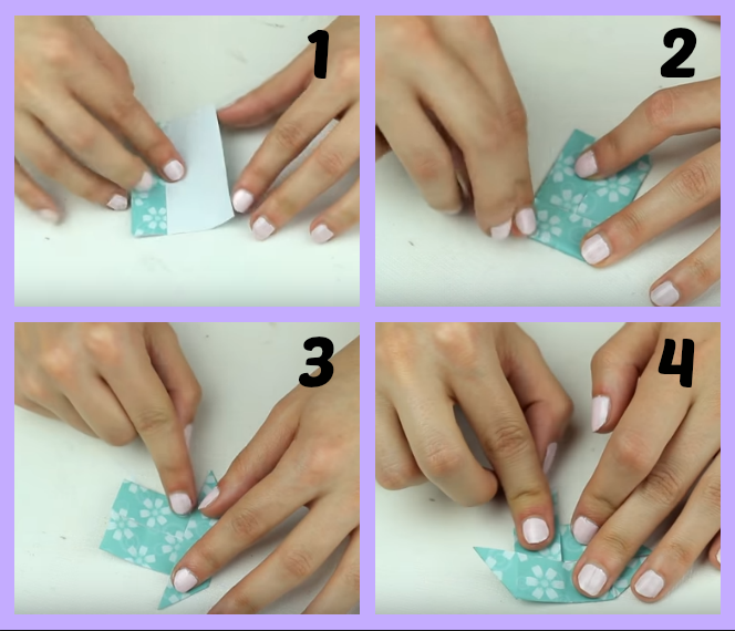 4. Cuando ya lo tengas, dobla cada una de las 4 esquinas por separado y en la dirección contraria a la que están orientadas.