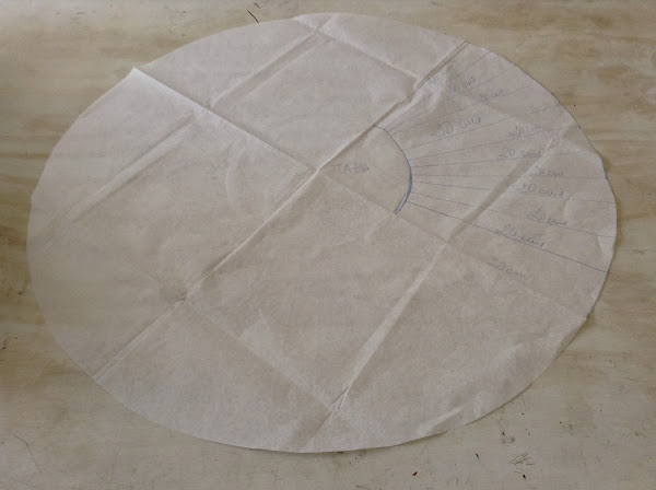 Coloca este circulo encima de la tela escogida y corta la tela siguiendo el patrón sin dejar margen de costura, ya está incluido.