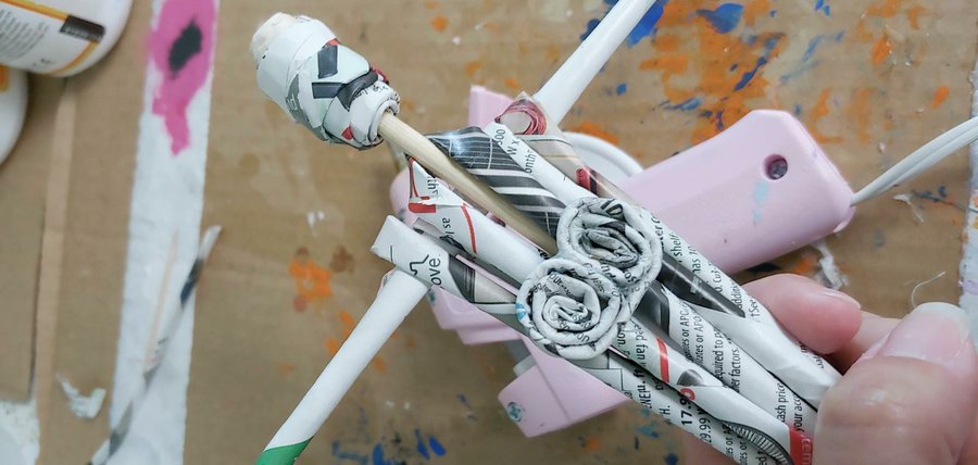 Una vez armadas las partes superior e inferior las uniremos y utilizaremos papel servilleta con pegamento para afianzar la union.
