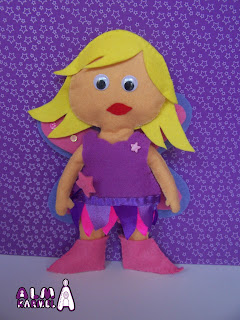 que seguro hará tus sueños realidad. Lleva el pelo largo suelto, unas alas con lentejuelas que la hacen brillar y un vestido en tonos morados y rosas, ya que a su pequeña dueña le encantan estos colores.
