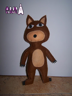 También tenemos al Lobo feroz,que como veis no es tan fiero, y no enseña sus dientes, jeje, por lo que no nos da miedo....